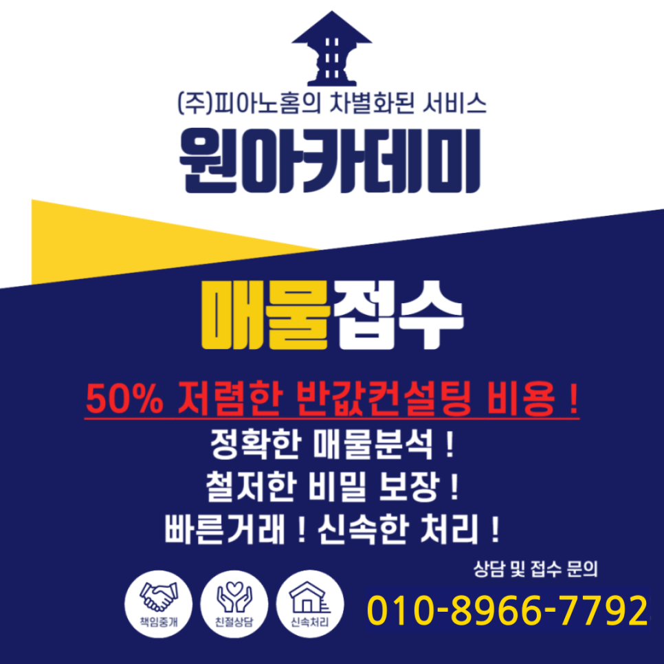 더 이상 높은 중개수수료를 지불하지 마시고 원아카데미에서 저렴한 중개수수료로 최고의 서비스를 만나보세요