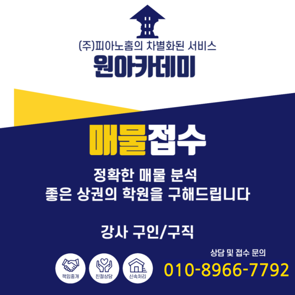 일반 부동산과는 차원이 다른 22년의 피아노학원 전문성을 가지고 진행하는 원아카데미에서 제대로 된 피아노학원 사업을 시작해보세요