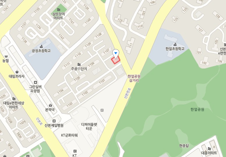 경기 군포시 산본2동 1052-1번지 주공아파트11단지 교육센터 3층 (파랑새음악학원)