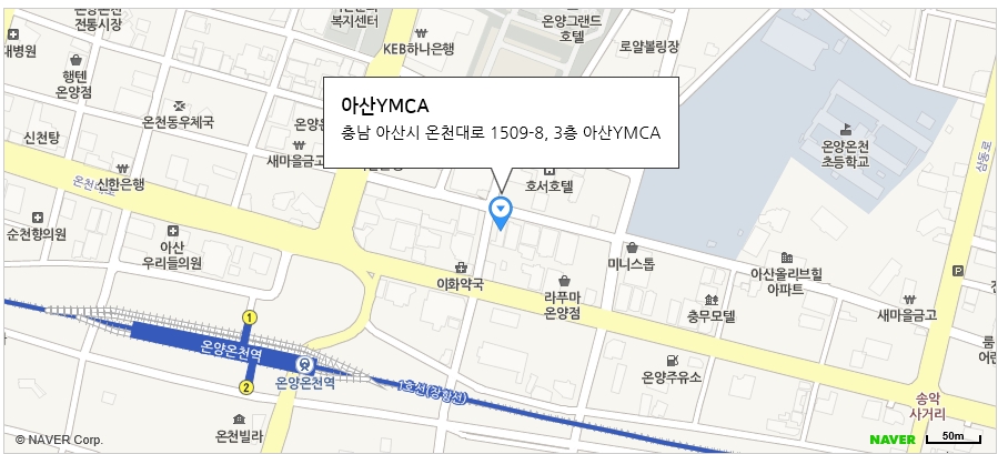 충남 아산시 온천대로1509-8 3층 , 온양온천역에서 하차 후 1번출구에서 도보로 3분 이동