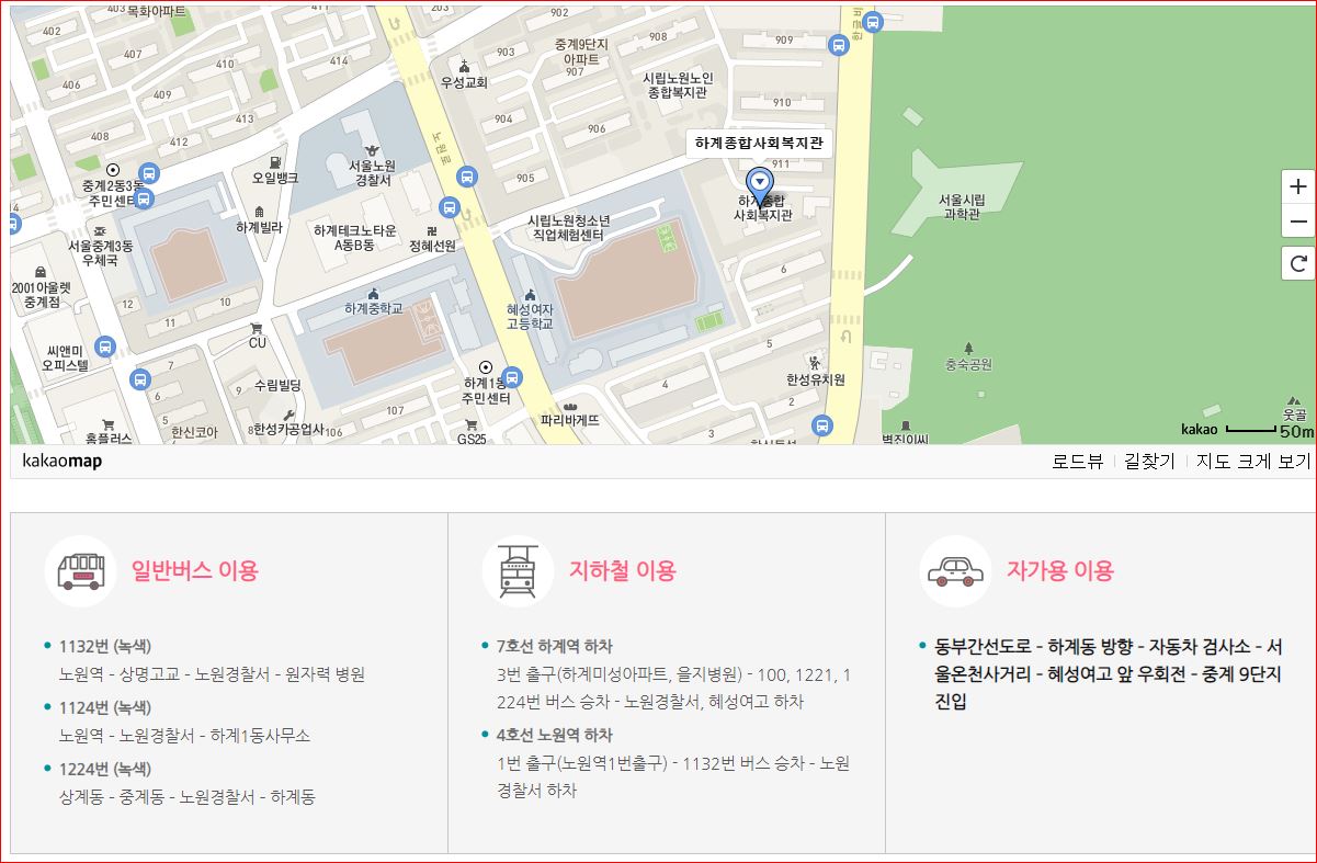 노원 하계 종합사회복지관 - 노원로 16길 15 주공 9단지 911동 맞은편