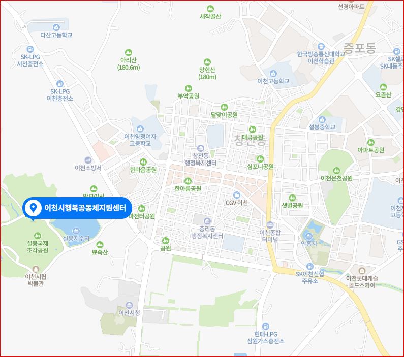 행복공동체 지원센터- 경충대로 2697번길 306 1층 (설봉저수지 옆)