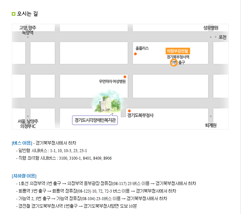 경기도 시각장애인복지관(4층 흰지팡이홀) 의정부시 신곡동 801-1 4층